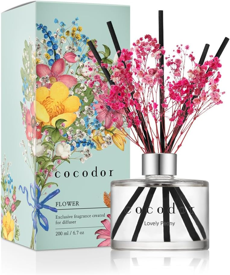 Cocod'or [COCODOR/Lovely Peony Flower Reed diffusers Oil with a Set of 5 Fiber Sticks, 200ml, Best for Home, Kitchen, Bathroom. Diffusers with sticks