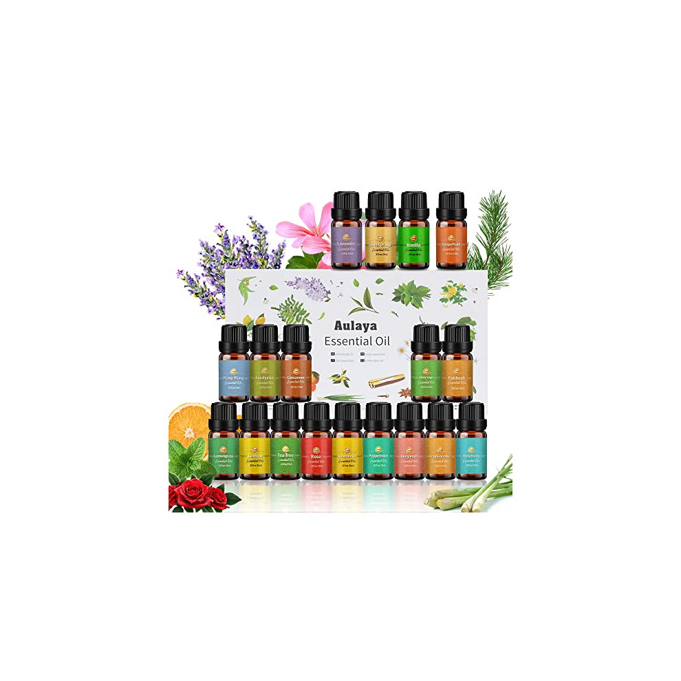 Essential Oils for Diffusers for Home, Diffuser Oil 18x10mL, Tea Tree, Lavender, Eucalyptus, Frankincense, Lemon Grass, Rosemary, Orange, Mint, Lemon,