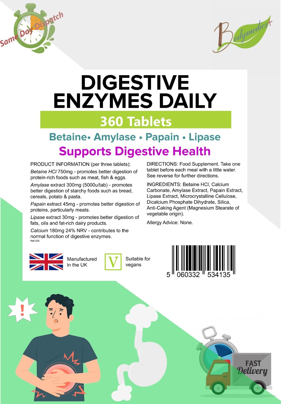 Digestive Enzymes Daily Digestion, Help Release Nutrients 360 Tablets LINDENS UK