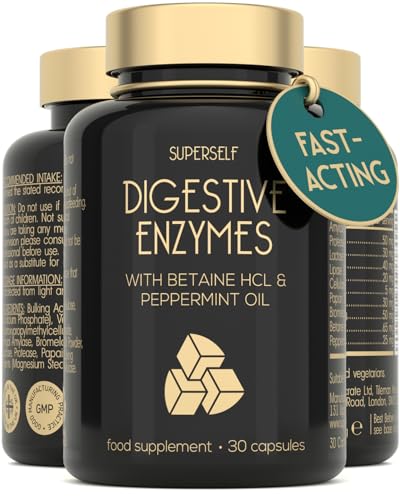 Digestive Enzyme Supplements with Betaine HCL - 7 Digestive Enzymes for Gut Health & Support with Lactase, Bromelain, Lipase & Peppermint Oil - 30 Capsules - Gentle & Fast Acting Tablets - UK Made