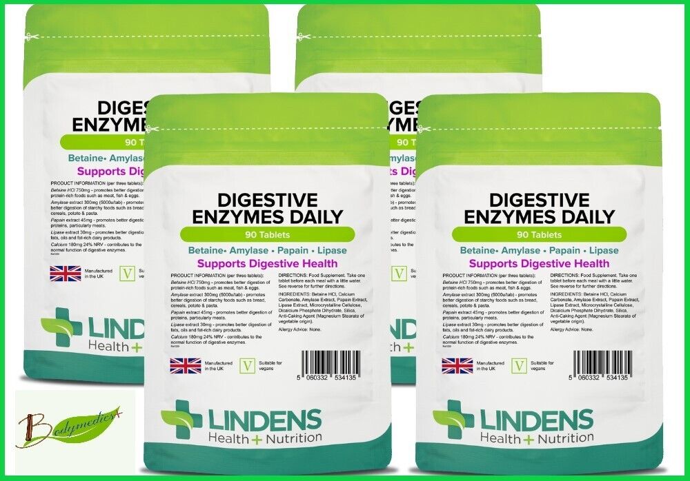 LINDENS Lindens Digestive Enzymes Daily Tablets - 90 Pack Contains Betaine Hcl, Papain, Amylase & Lipase to Promote Better Digestion UK Manufacturer,