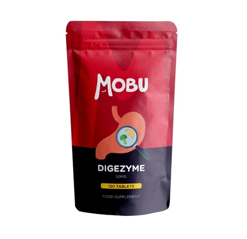 MOBU Digestive Enzymes 120 Tablets | Contains Digezyme, Amylase, Lactase, Lipase Gut Health & Digestion Support Vegan UK Made GMP Approved