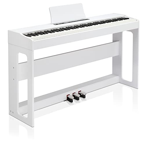 MUSTAR 88 Key Piano Keyboard for Beginners, Full-Size Digital Piano 88 Semi Weighted Keys with 3-Pedal Unit, Portable Electric Piano with Built-In Speakers, USB/MIDI Connecting (White)