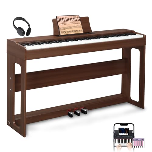 LALAHO Digital Piano 88-Key Weighted Action Electric Piano with 3-Pedal Unit, Double Bluetooth, Split/Touch/Transpose Control Functions(Black Walnut)