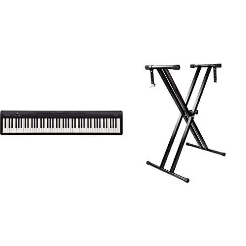 Roland Fp-10 Digital Piano, 88-Key Digital Piano, Portable, Ideal for Home Use & Practise, Black & RockJam RJX29 Double Braced Adjustable Keyboard Stand with Locking Straps, Black