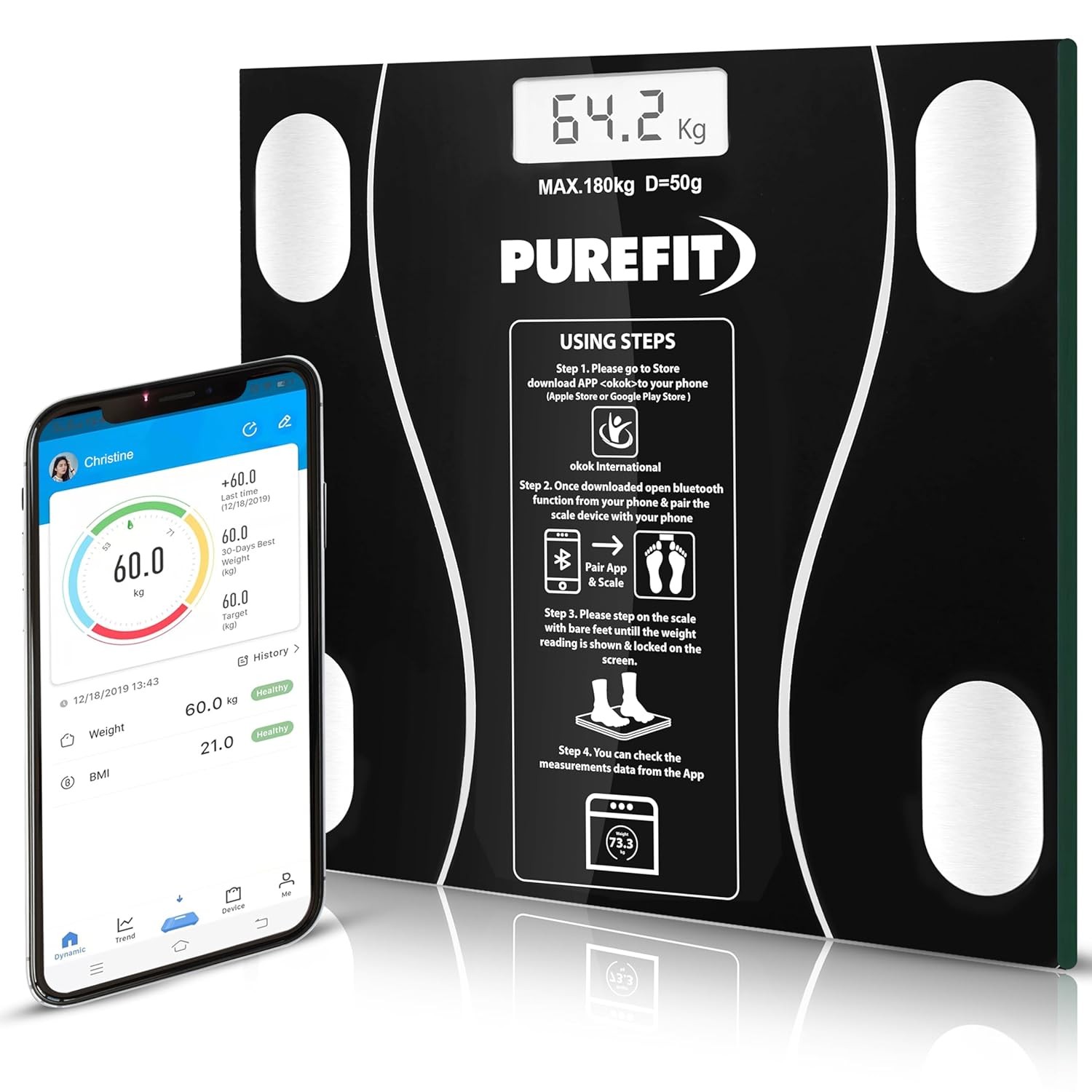 PUREFIT Smart Body Fat Scales - App Controlled Digital Bathroom Scales for Body