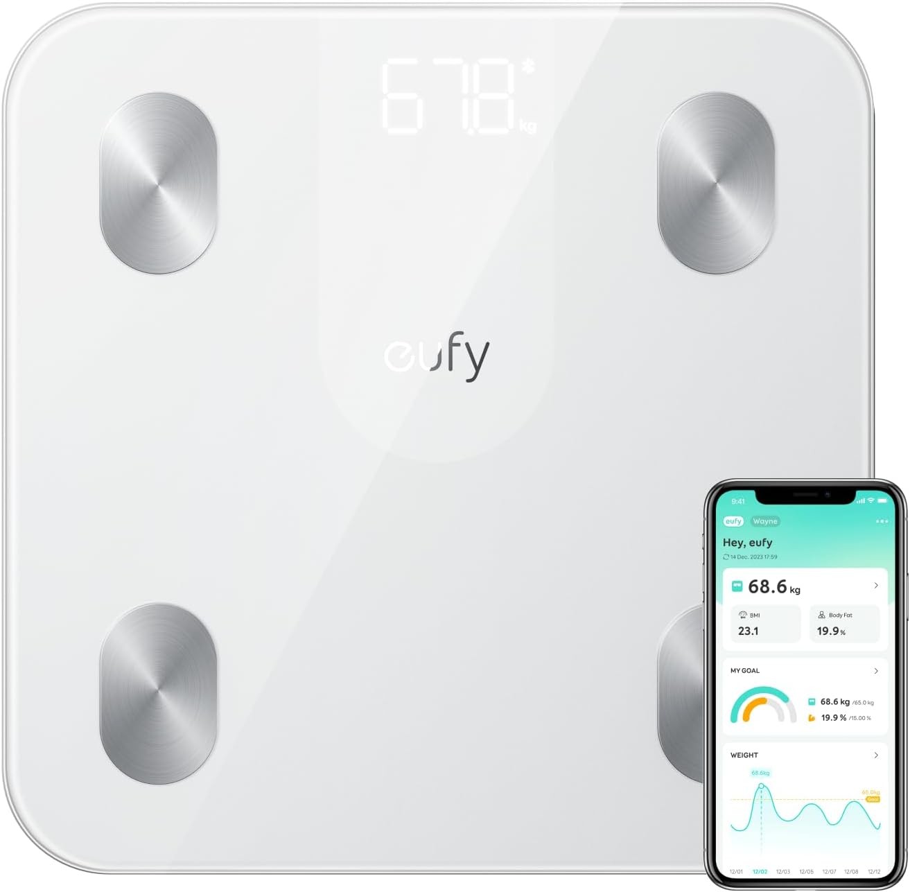 eufy Weighing Scales for Body Weight, Digital Bathroom Scales with Bluetooth, Body Fat Scales, 12 Measurements, Weight/Body Fat/BMI, Fitness Body Composition Analysis, Black, lbs/kg, Scale A1 -White