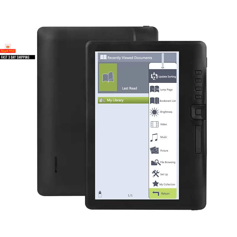 Portable E-Book Reader with 7 Inch Color TFT LCD, Ultra Clear Electronic Screen Digital Reading Device with Integrated Body Design, Chapter Preview
