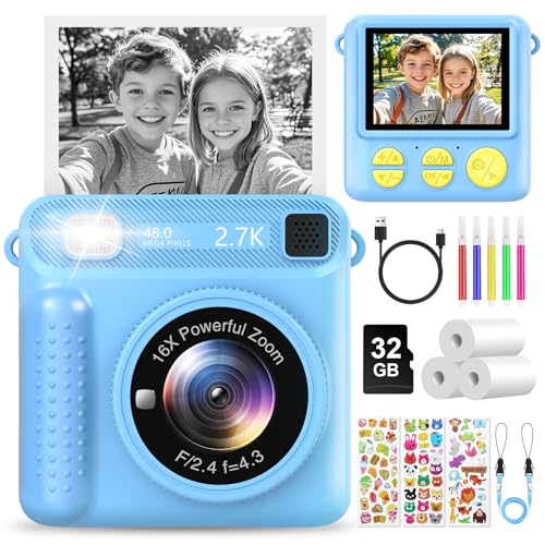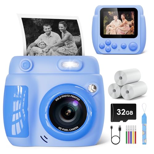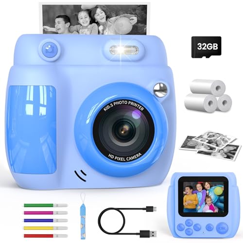 HiMont Kids Camera Instant Print, Digital Camera for Kids with No Ink Print Paper & 32G TF Card, Selfie Video Camera with Color Pens for DIY, Fun Gift for Girls Boys 3-14 Years Old (Blue)