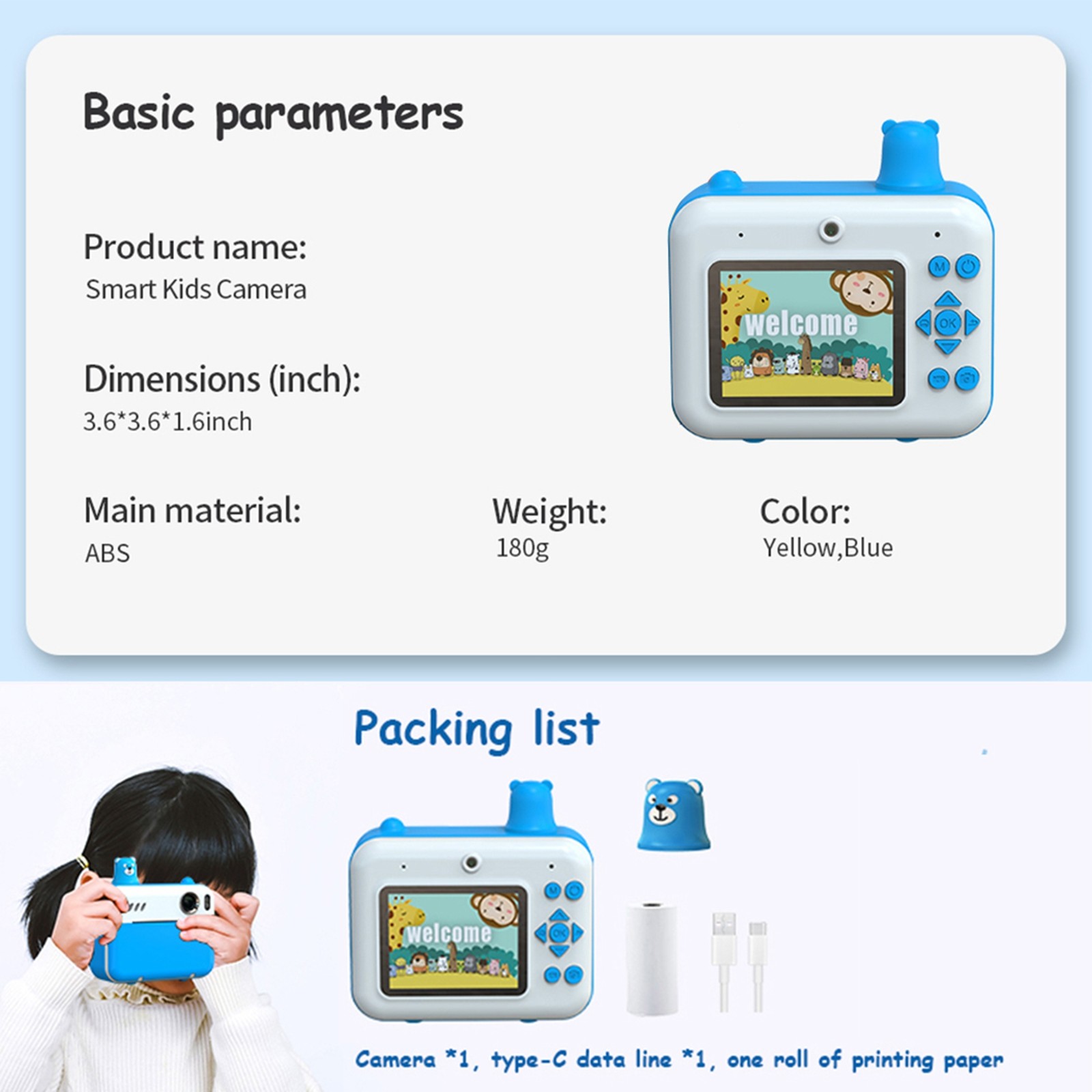 Blue Kids Instant Print Camera Kids Camera 1080P Digital Camera For Kids 2. HEN