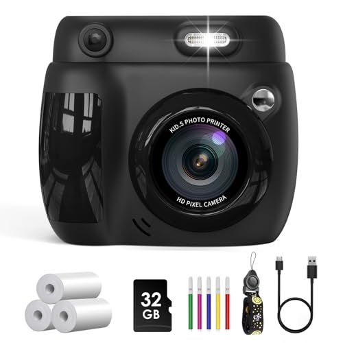 Gofunly Kids Camera Instant Print, 1080P 2.4'' Digital Camera for Kids with 32GB Card & 3 Rolls Print Paper, Birthday Gifts Toys for Boys Girls Ages 3-12, Black