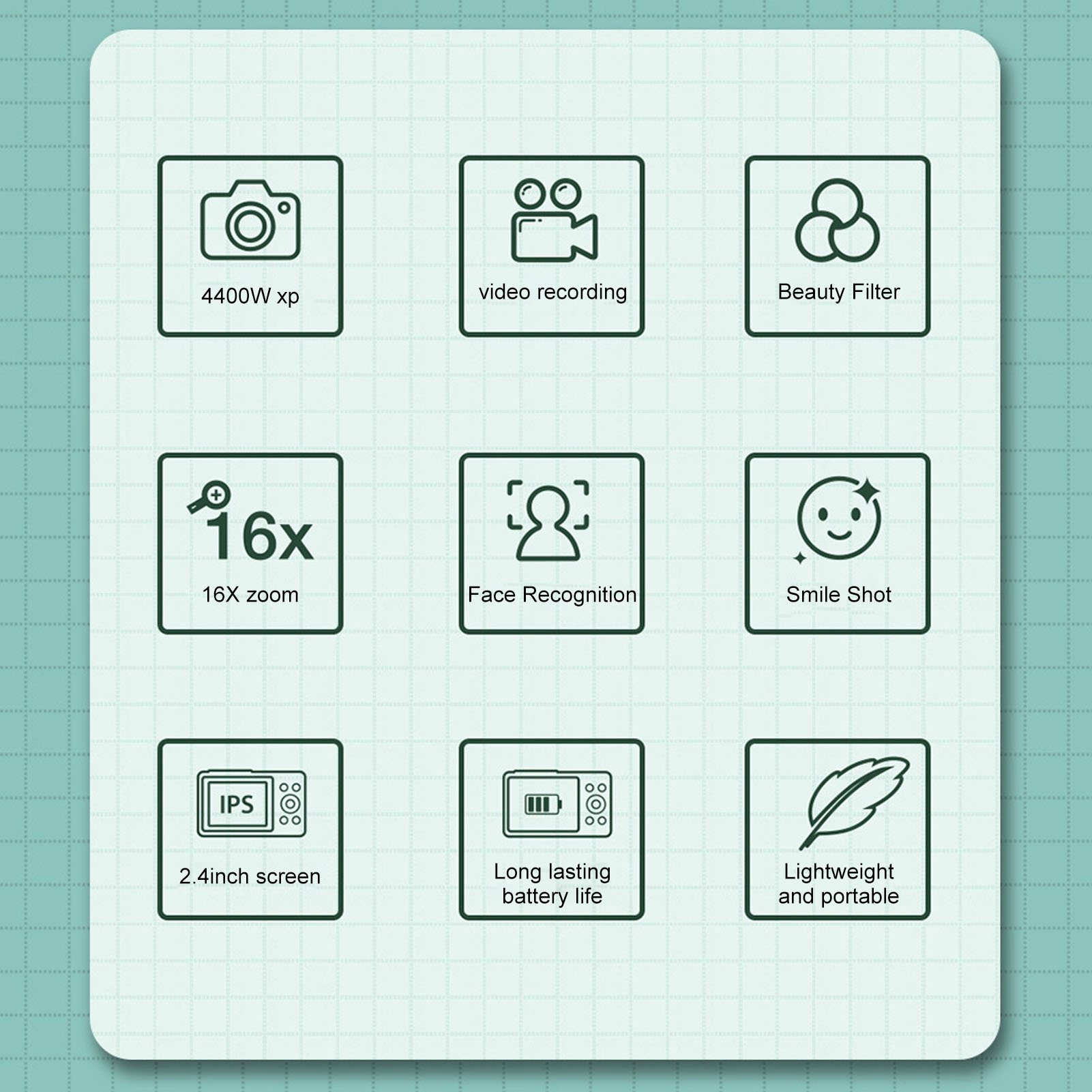 64GB Digital Camera for Kids: 48MP Anti-Shake Vlogging Camera - 16X Zoom, Photo Filtration, Continuous Shooting, Self-Timer, Compact Design