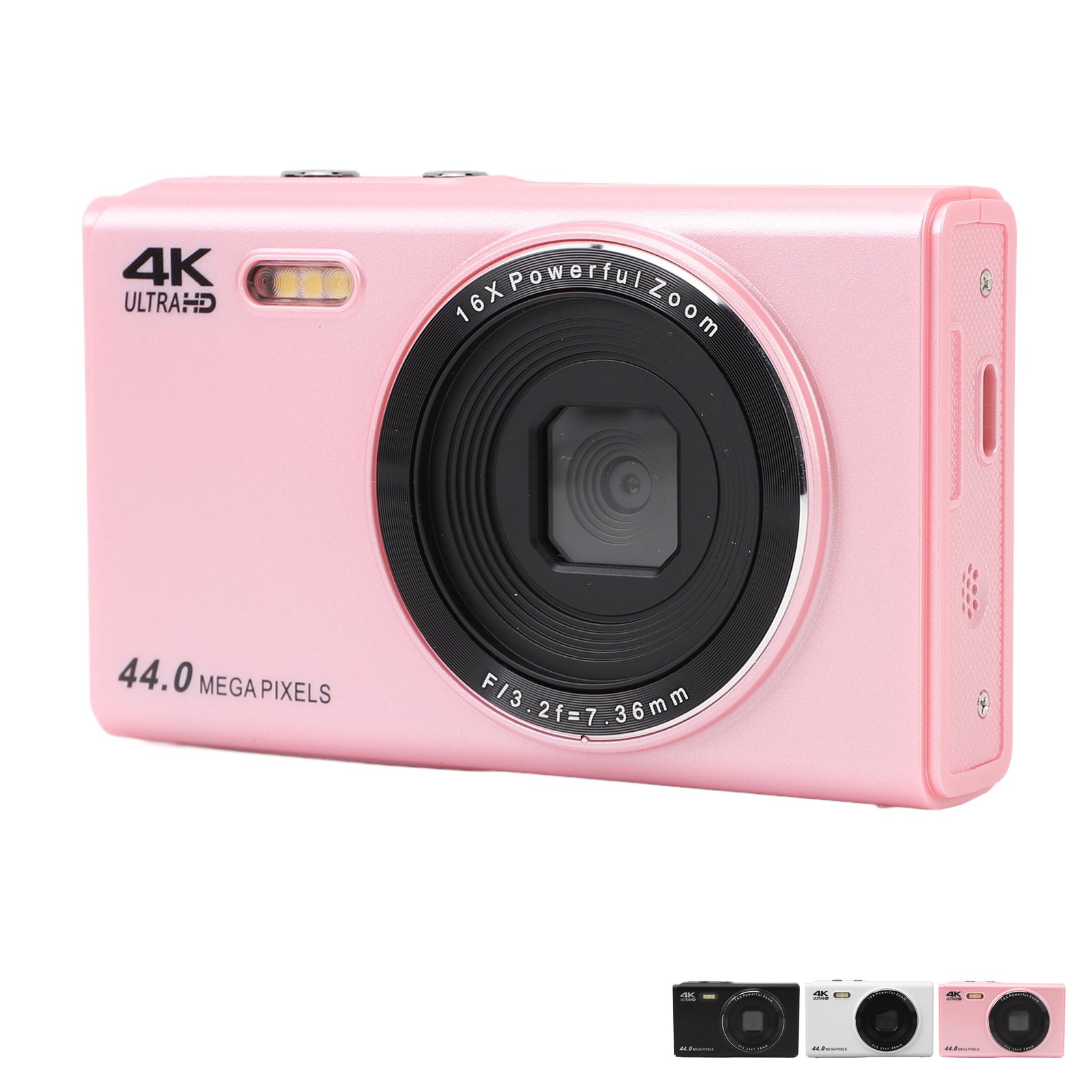 Pink 4K Digital Camera For Teens Kids 44MP 16X Digital Zoom Autofocus Anti OU