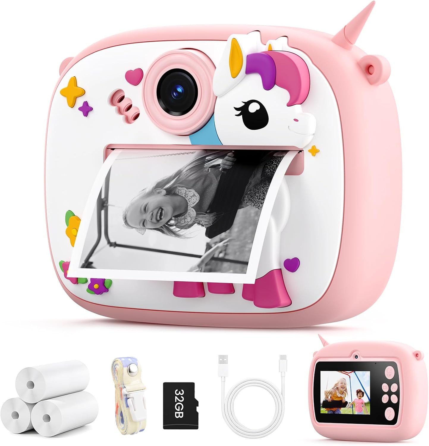 Gofunly Kids Camera Instant Print, 1080P Digital Camera for Kids with 32GB Card