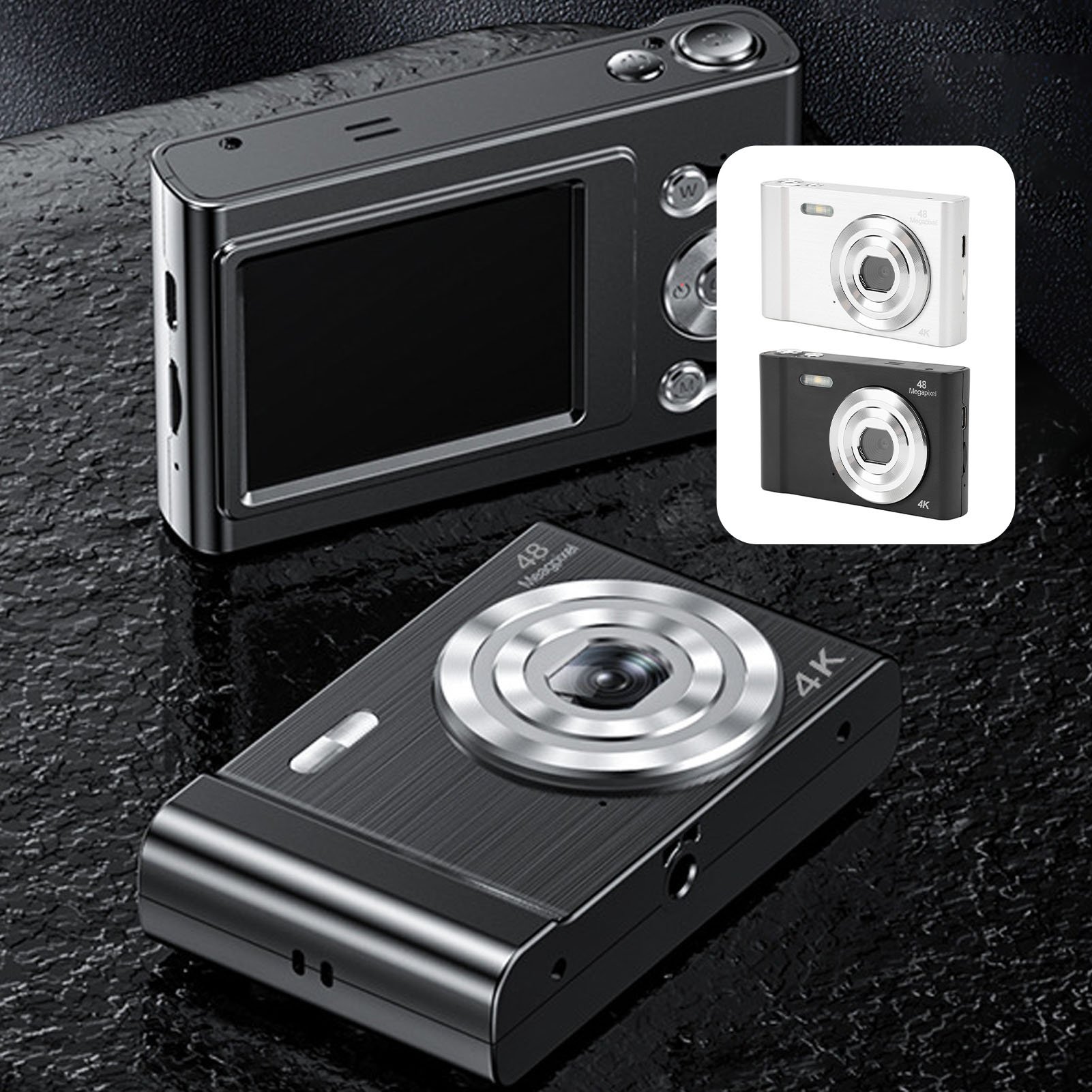 Digital Camera, Autofocus 48MP Front Rear Dual Lens Digital Camera, Portable Compact Point and Shoot Digital Camera for Kids Boys Girls (Black)