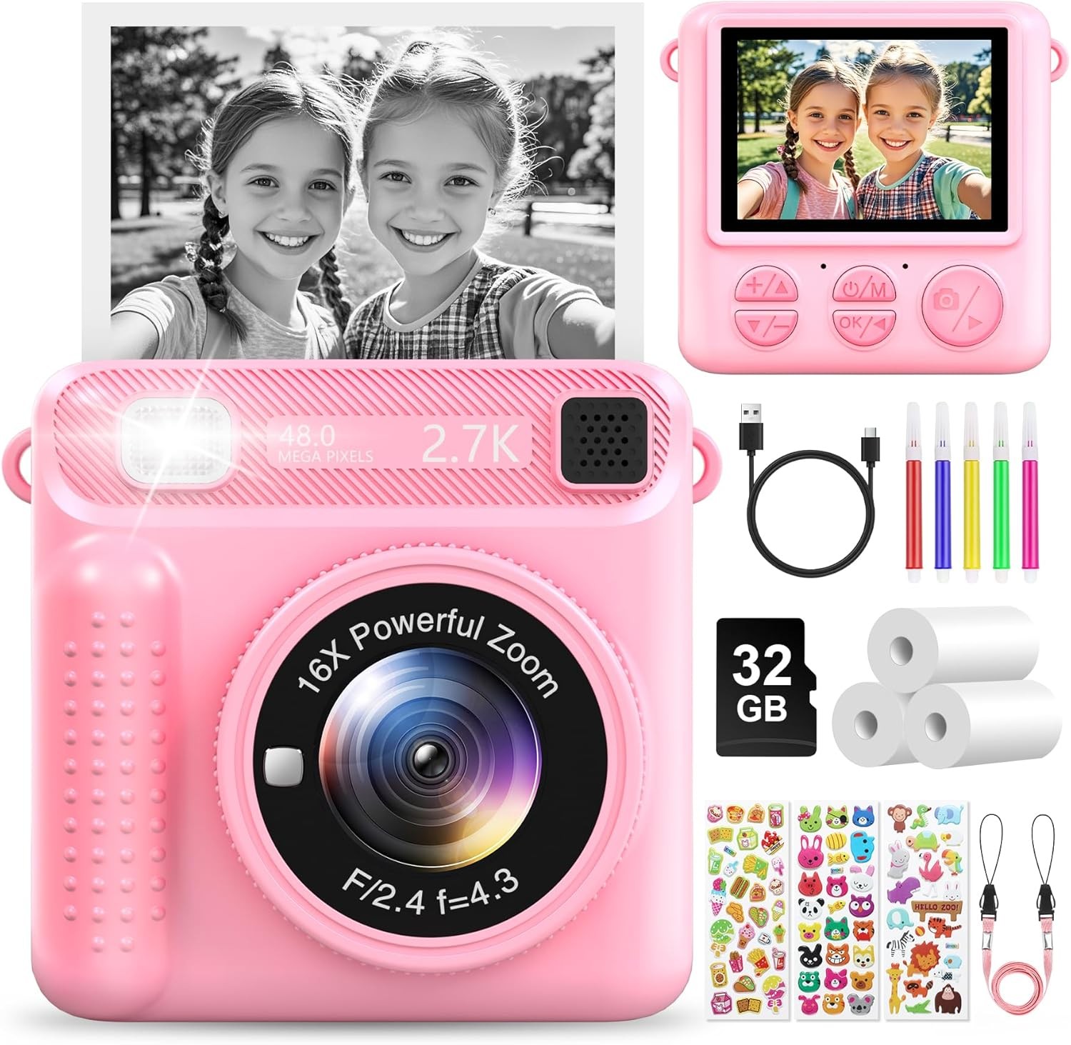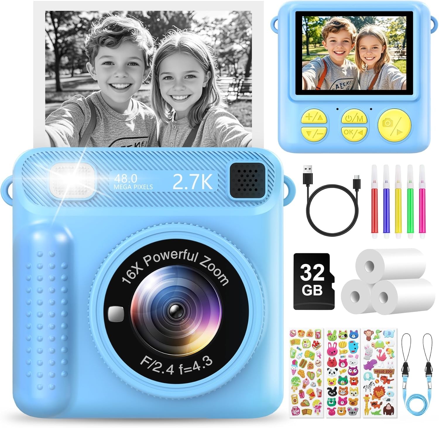 Kids Camera Instant Print, Digital Camera for Kids with No Ink Print Paper & 32