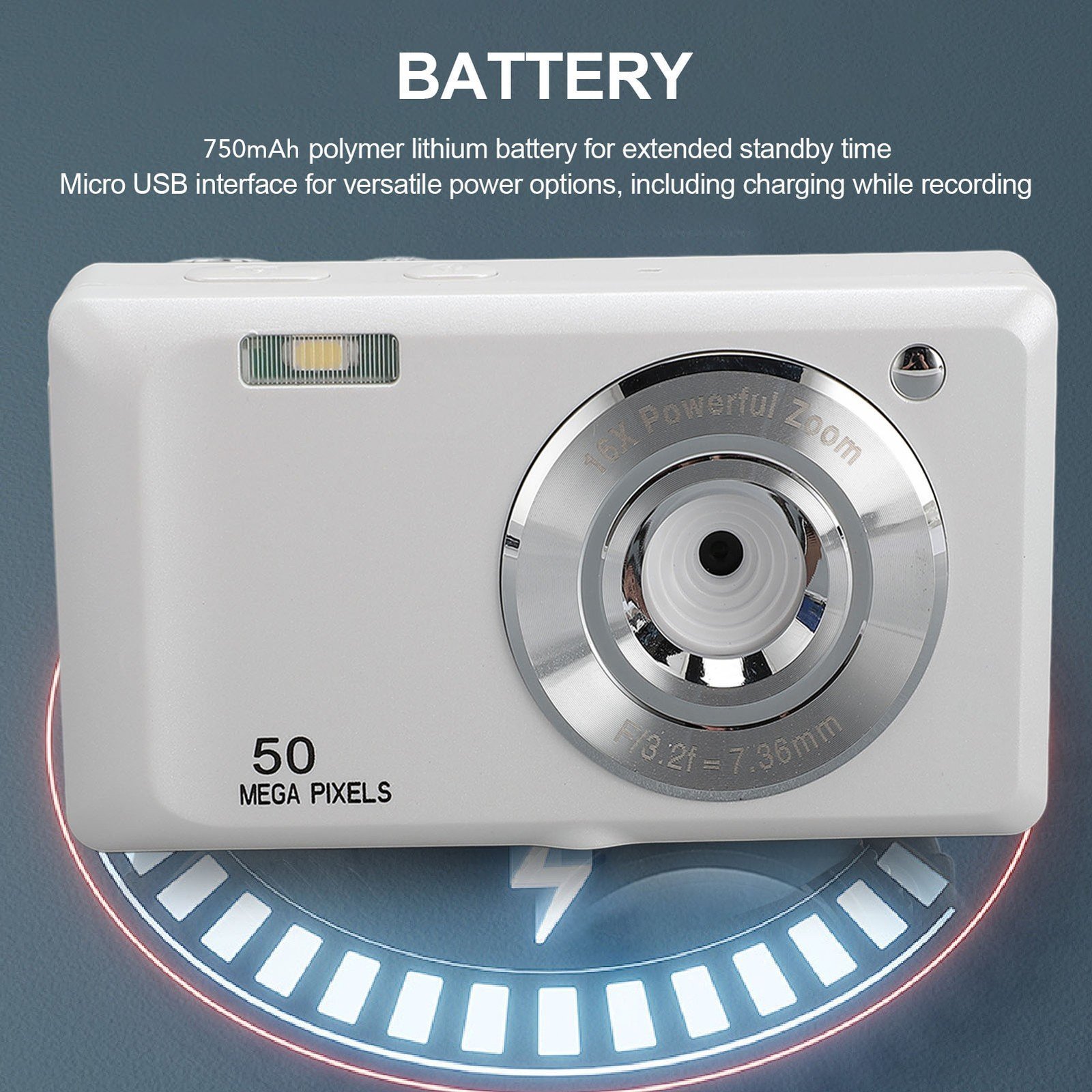 1080P Compact Digital Camera, 16X Zoom COMS Sensor Kids Digital Camera, 30fps 90° Viewing Angle 180Mah Digital Camera for Kids Teens Adult Beginner