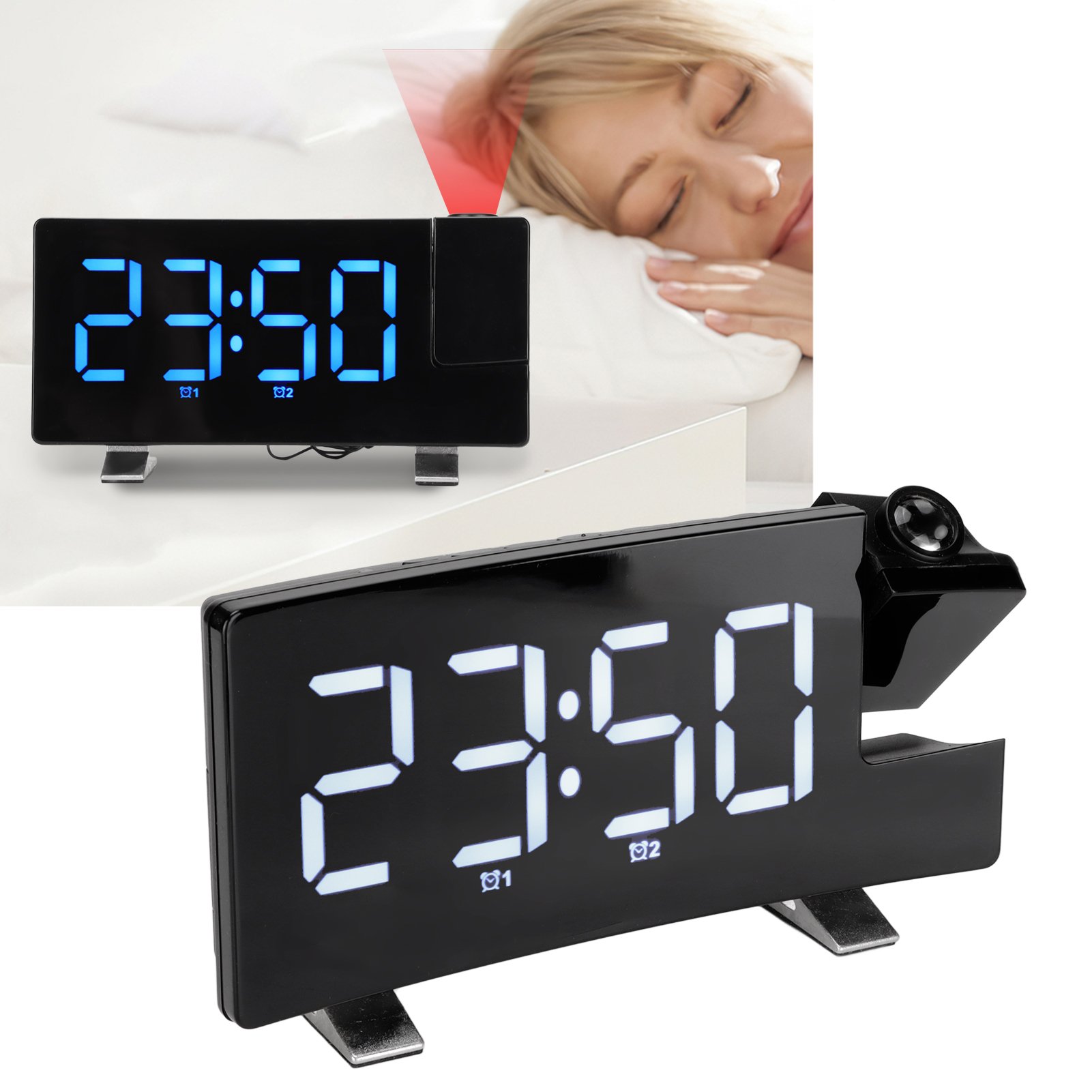 Kdouehg Projection Alarm Clock Ceiling Display Snooze Desk Table Clock Voice Multifunction Digital Projection Clock Black