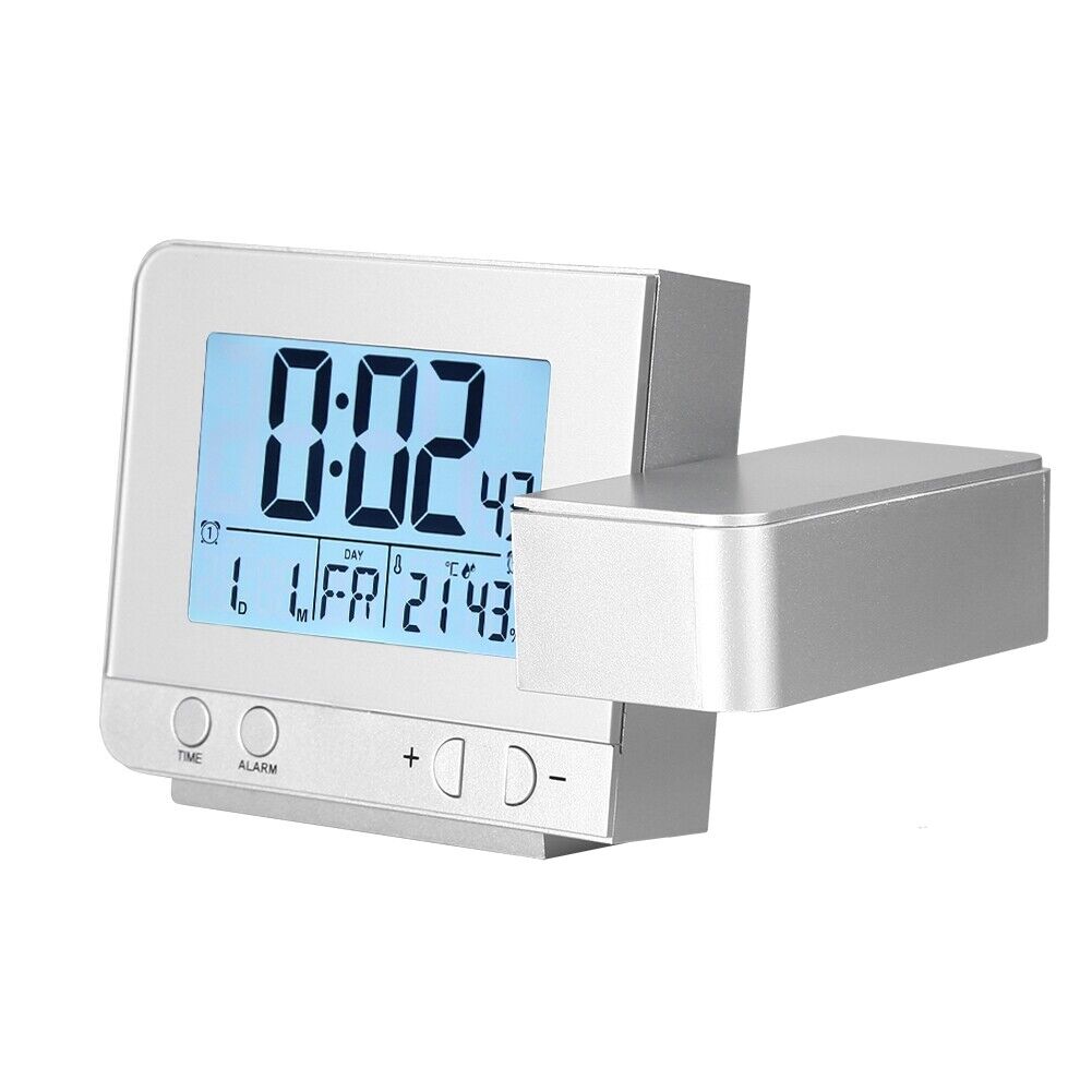 Jrudjsnhhty Projection Alarm Clock Ceiling Display Snooze Desk Table Clock Voice Multifunction Digital Projection Clock White
