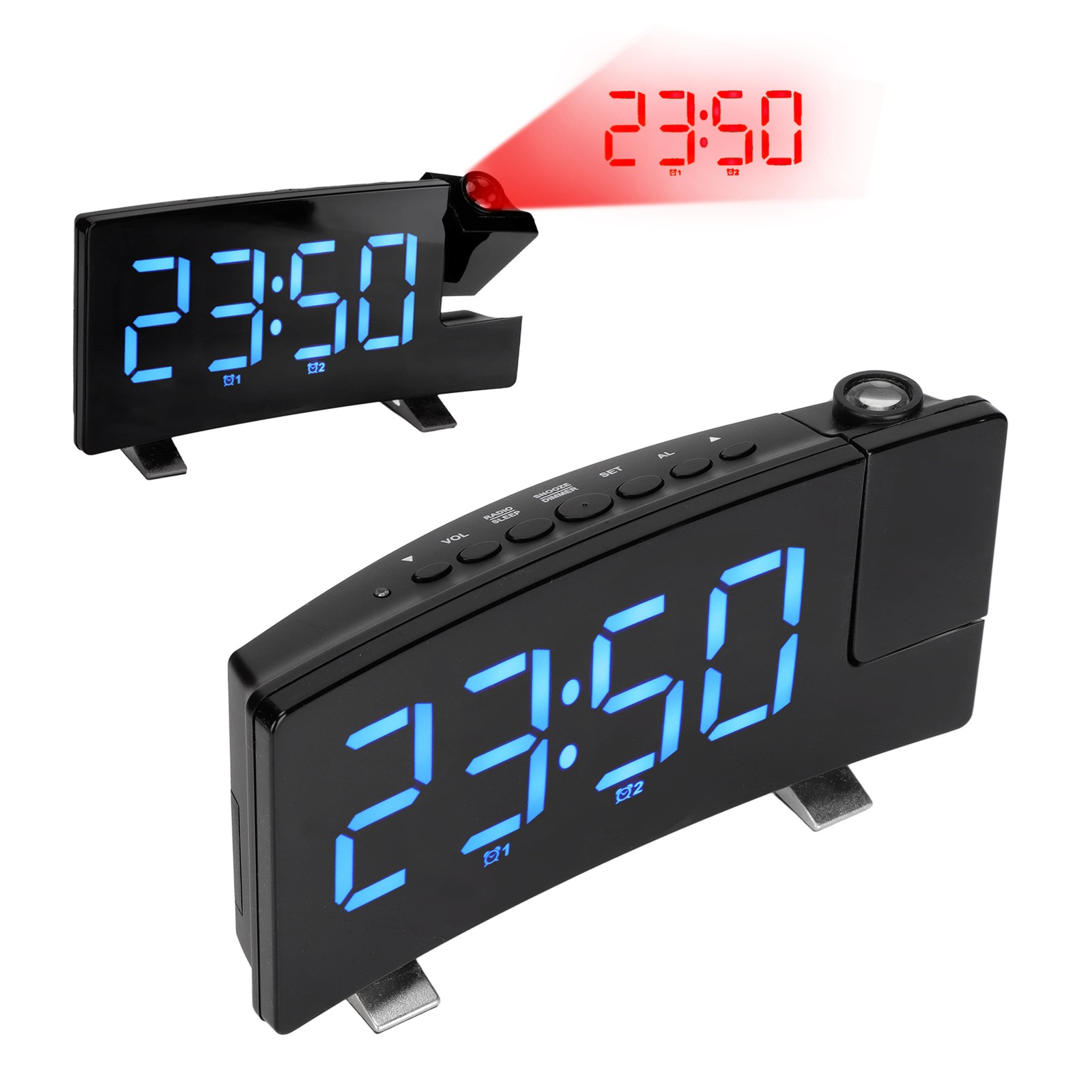 VENEKA Projection Alarm Clock Ceiling Display Snooze Desk Table Clock Voice Multifunction Digital Projection Clock Black