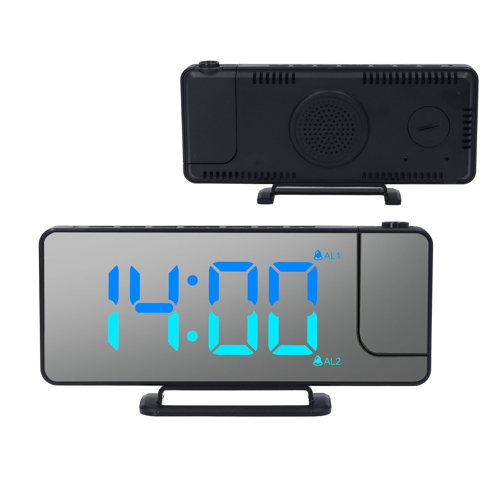 Pqahffowr Led Digital Projection Clock Mirror 180°Rotation Large Screen Date Time Temperature Electronic Alarm Clock for Bedroom Easy to Use -C
