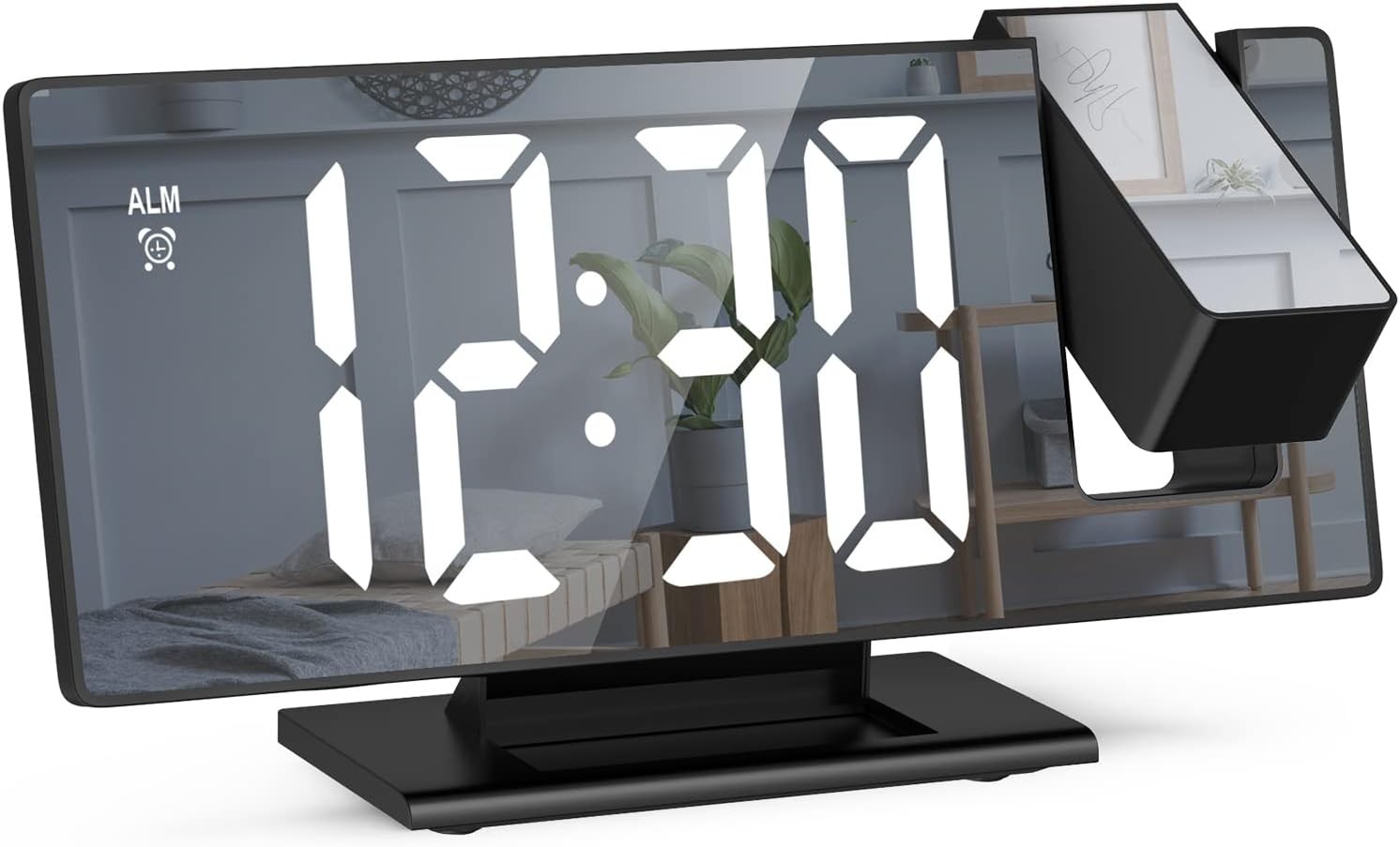 Fuhjythy Led Digital Projection Clock Mirror 180°Rotation Large Screen Date Time Temperature Electronic Alarm Clock for Bedroom Easy Install -A