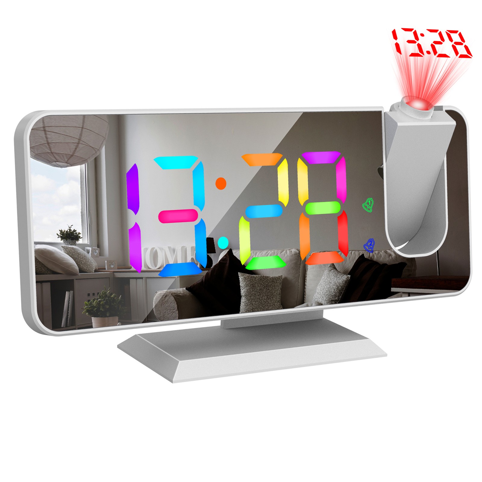 (White) Rgb Colorful Gradient Digital Clock Projection Clock Mirror Alarm Clo