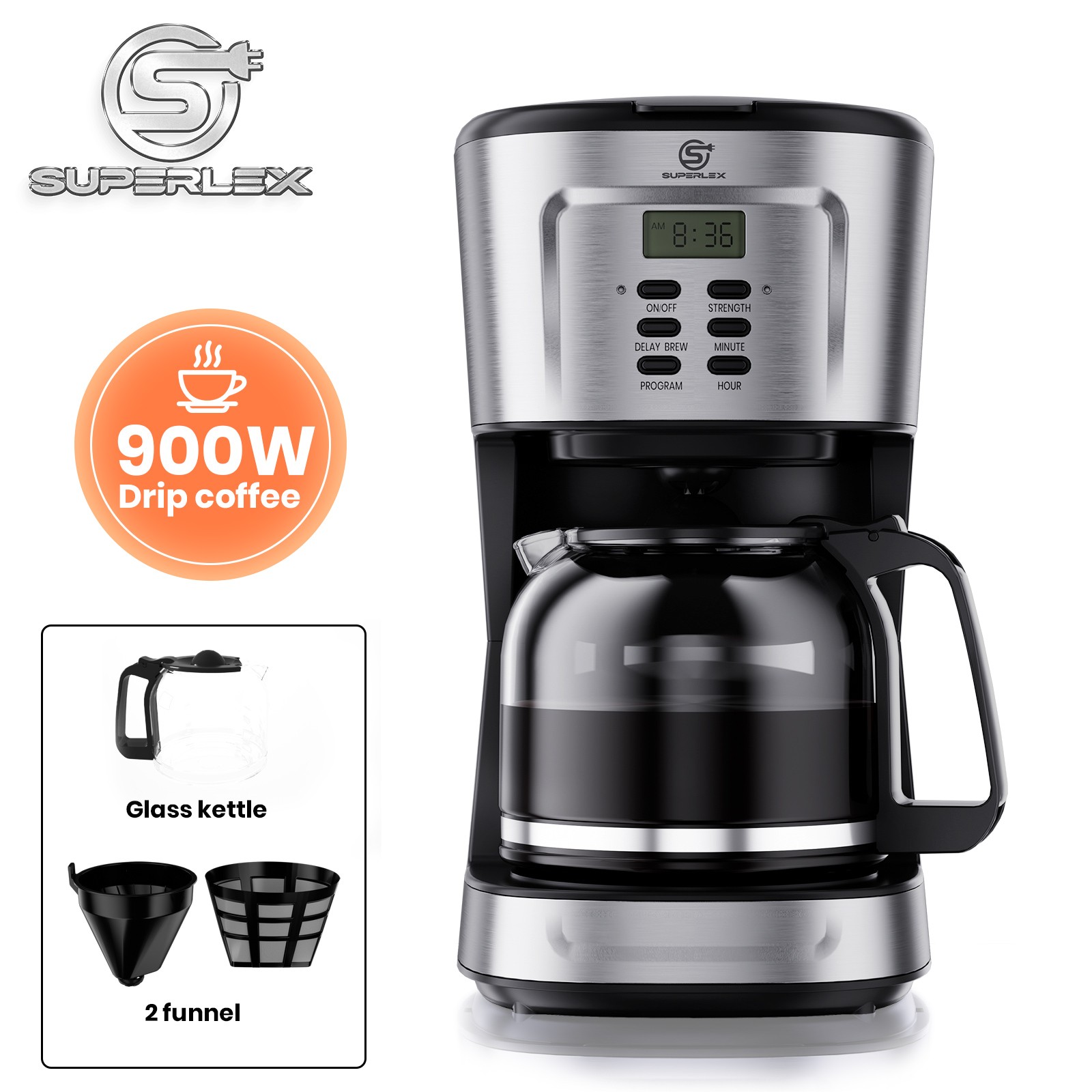 SUPERLEX 1.5L Filter Coffee Machine 12Cup Digital Coffee Maker w/ Warm Anti Drip