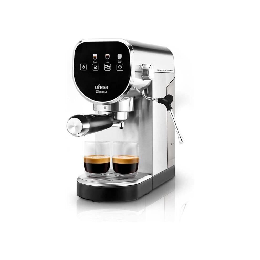 Ufesa Sienna Espresso and Cappuccino Machine 20 Bars, Digital Touch Screen, 1360W, Milk Frothing Nozzle, 0.9L, Ground Coffee and