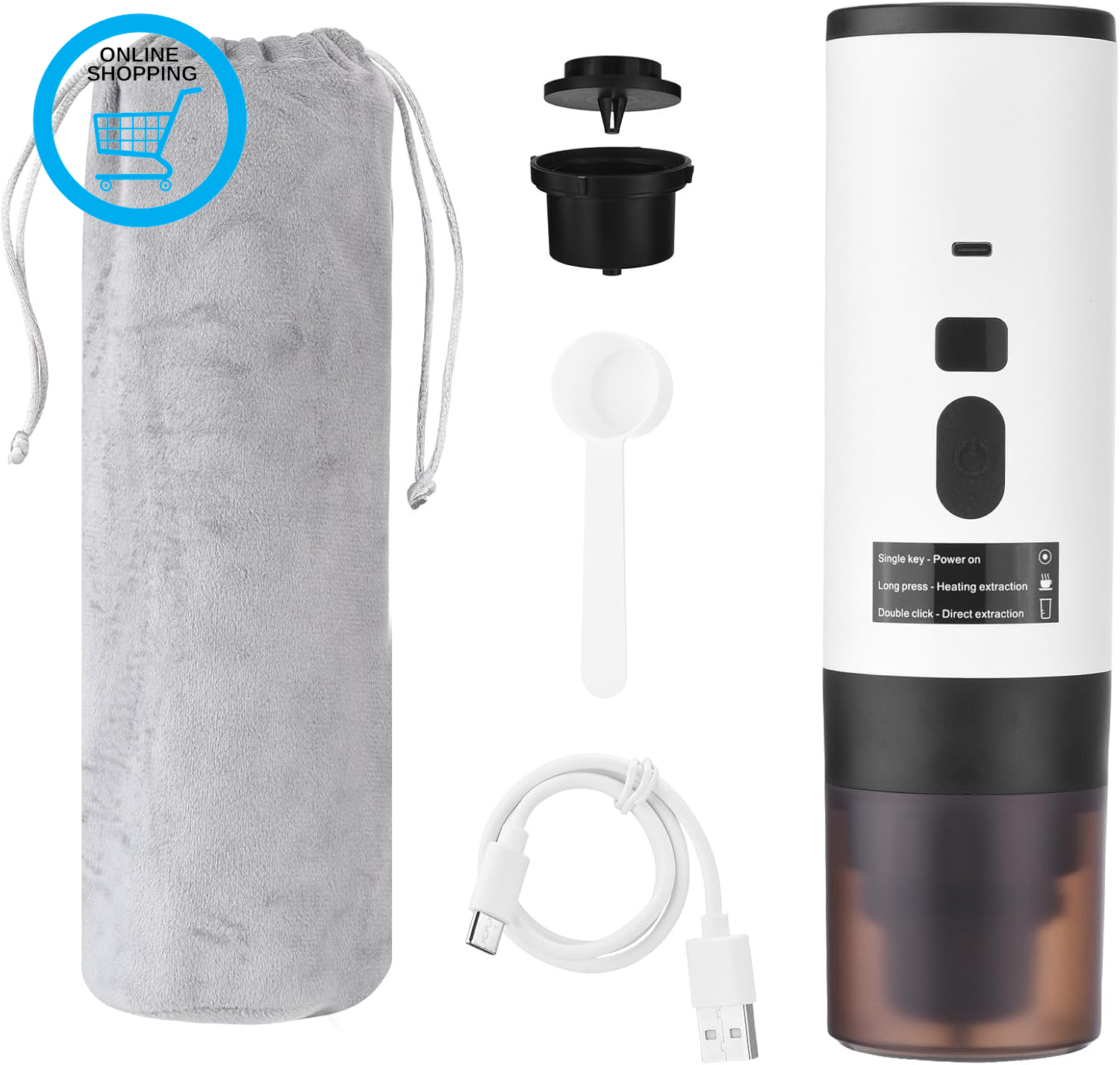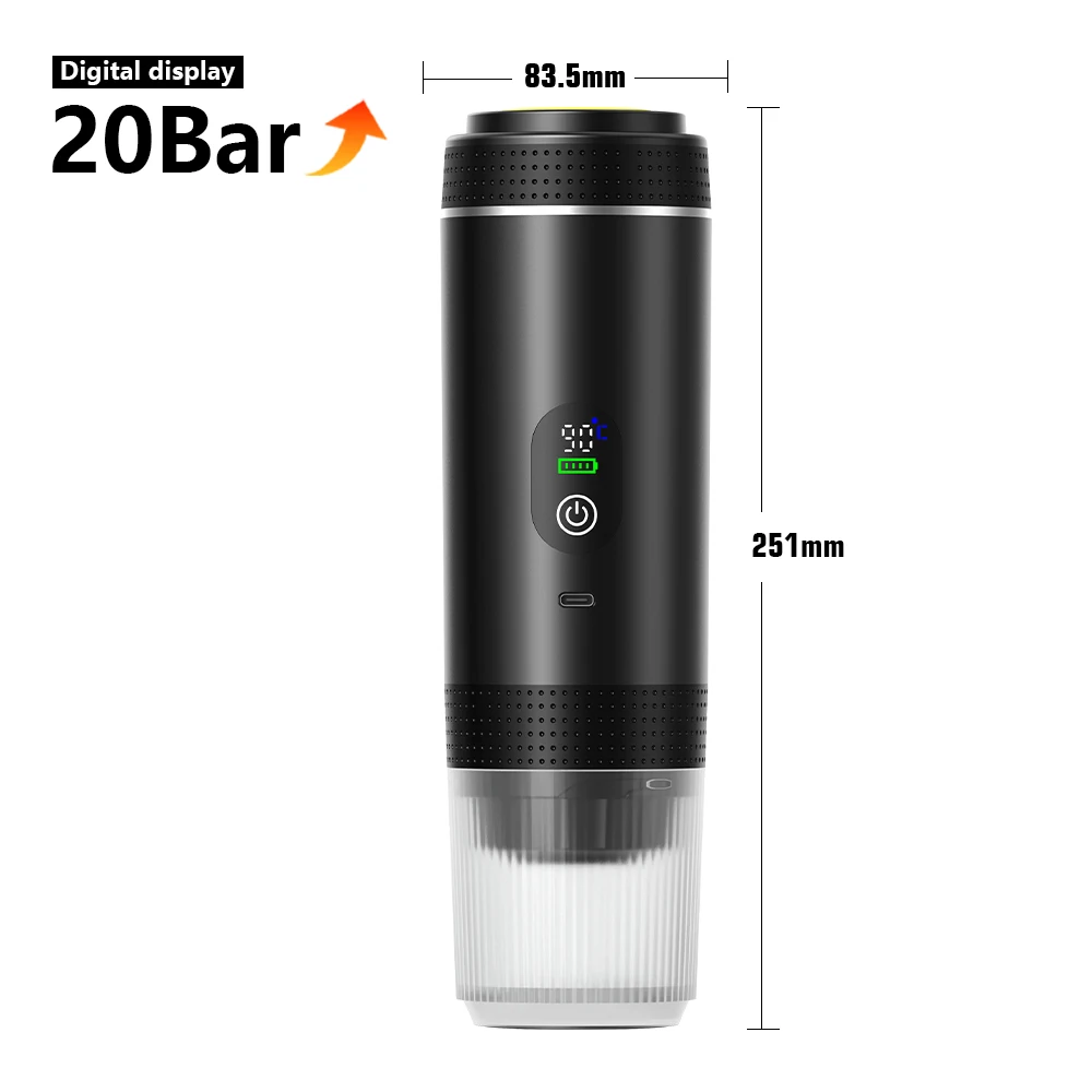 Portable Capsule Coffee Maker with Digital Display - Espresso Machine for Home, Car, and Camping Use