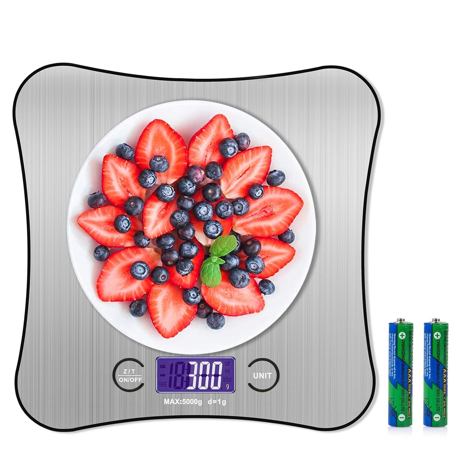 Himaly Digital Kitchen Scales Food Scale with Tempered Glass Platform,Electronic Cooking Scale with LCD Display, Multifunction Weighing Scale for Baking, Tare Function, 5kg/11LB