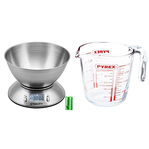 Etekcity Electronic Kitchen Scales with Stainless Steel Mixing Bowl, Digital Wet and Dry Food Weighing Scale for Cooking and Baking-11lb/5kg & Pyrex P586 Measuring Jug, 500 ml