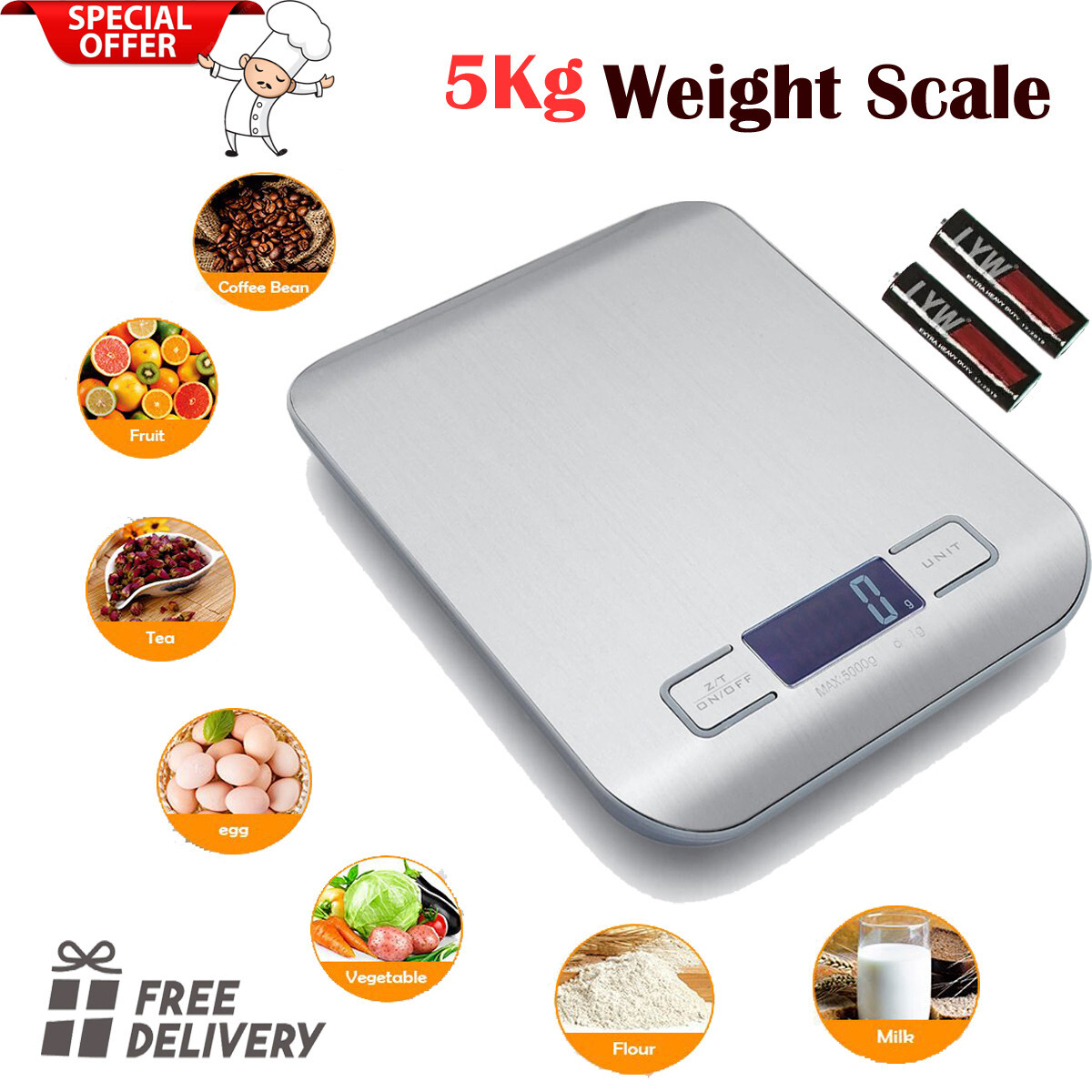 Kitchen Digital Food Scales LCD Electronic Weighing 5Kg Cooking Free 2x Battery