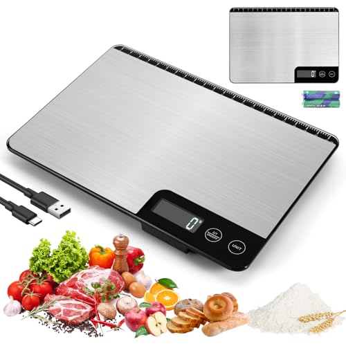 Brifit Digital Kitchen Scale, 20kg/44lb Food Scales with Large Stainless Steel Platform, USB Rechargeable Cooking Scales with LCD Screen, Electric Baking Scales with Tare Function, 5 Units