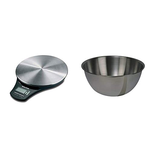 Salter Stainless Steel Digital Kitchen Weighing Scales - Electronic Cooking Scale Appliance for Home & Dexam Stainless Steel mixing bowl, 2.0 Litre