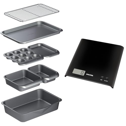 MasterClass Smart Space Stacking Non-Stick Bakeware Set, 7 Piece Baking Trays, Gift Boxed & Salter 1066 BKDR15 Arc Kitchen Scale – Digital Food Weighing Scales for Precise Cooking/Baking