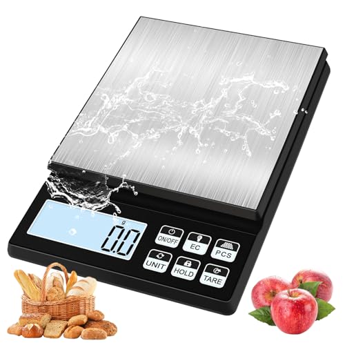 Drcowu Large Kitchen Food Scales, Digital Weighing Scale for Baking and Cooking, 15kg/33lb Electronic Kitchen Scales with 1g/0.1oz accuracy, Grams and Oz, Backlight LCD, Black