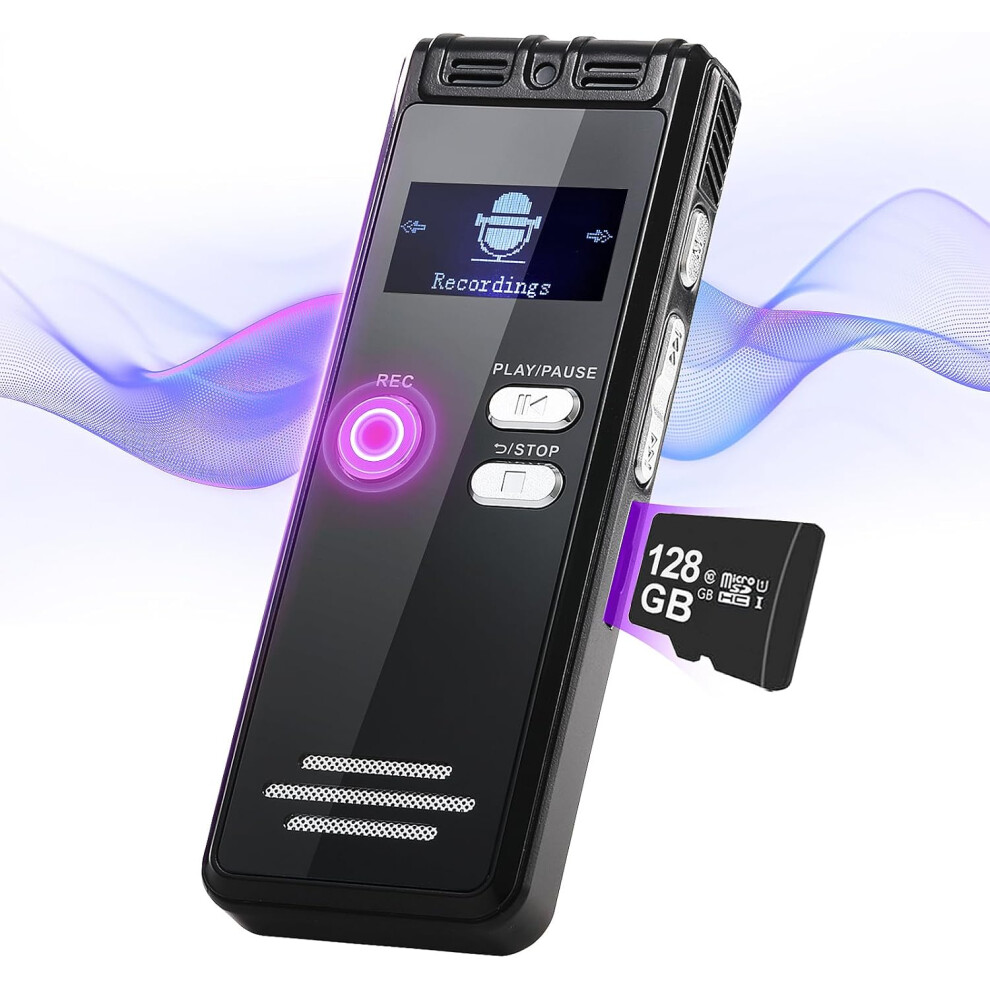128GB Digital Voice Recorder - 3072kbps Dictaphone Digital Voice Activated Recorder, 9600hours One-Touch Recording with playback, Recording Device for Lecture & Interview, Meeting, Class