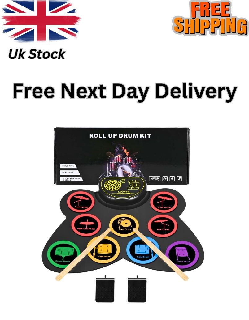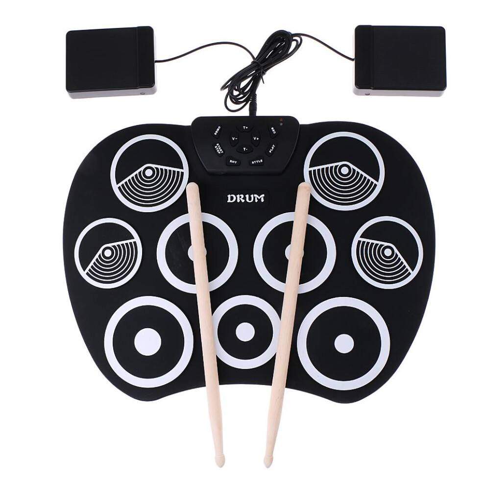 Drum Set Digital Electronic Roll Up Drum Set Kit with 7 Silicon Pads USB Powered Foot Pedals and Audio Cable