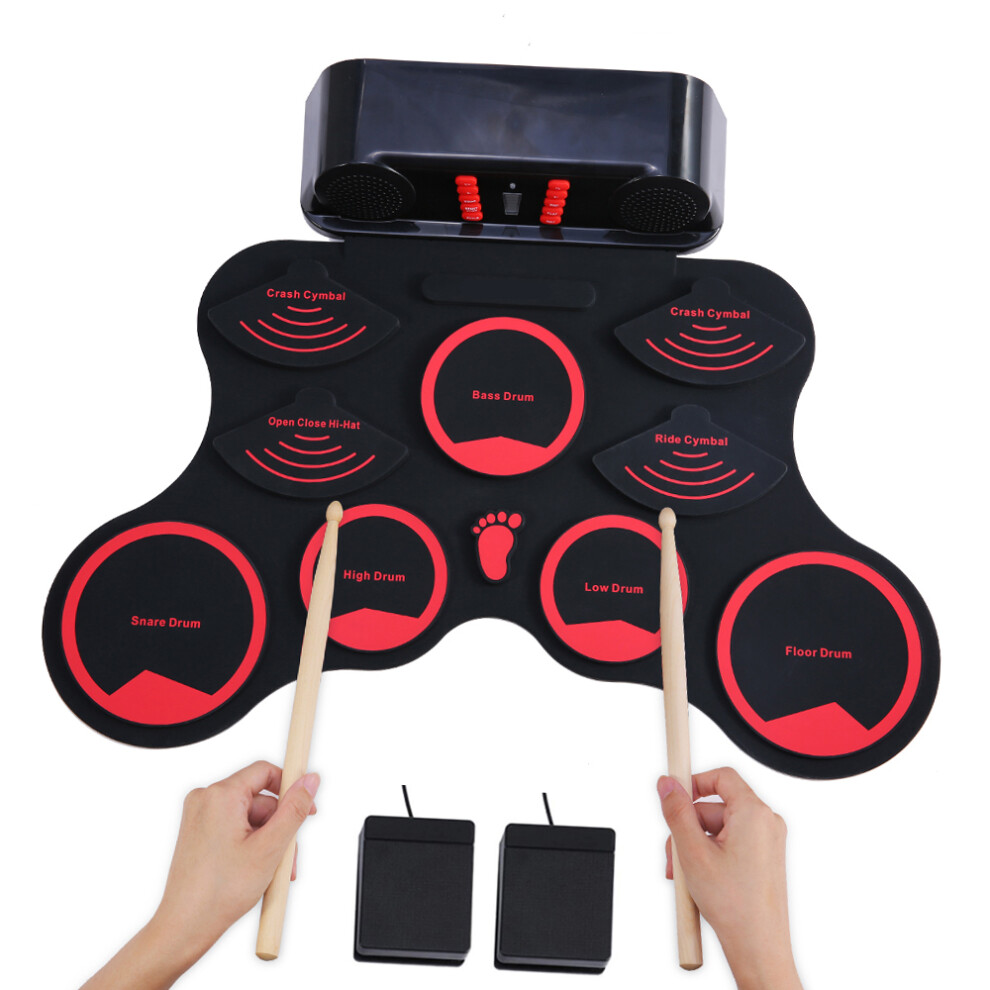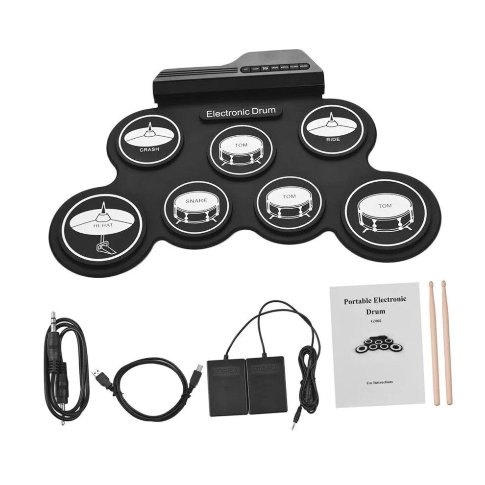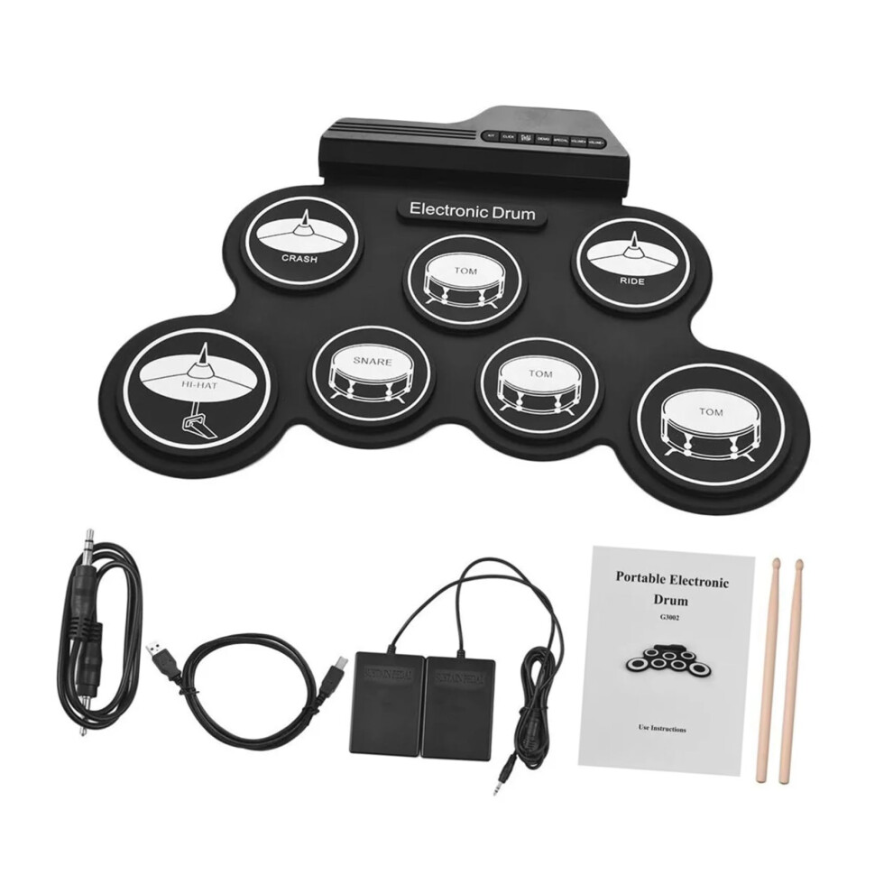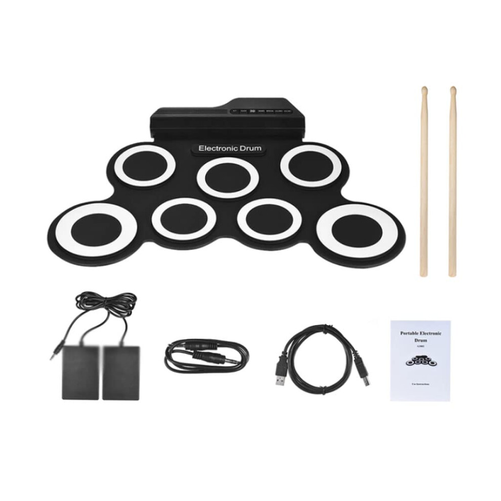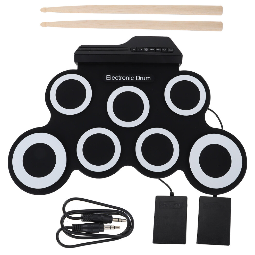 Compact Size Portable Digital Electronic Roll Up Drum Kit 7 Silicon Drum Pads USB Powered with Drumsticks Foot Pedals 3.5mm Audio Cable for