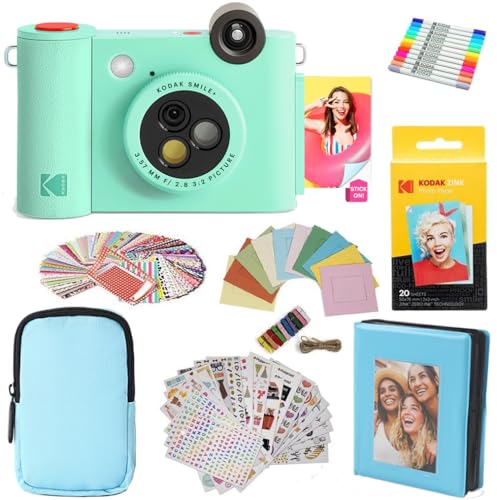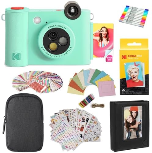 KODAK Smile+ 2-in-1 Digital Instant Camera & Photo Printer Gift Bundle - Case + Zink 20pk Paper + Album + Frames + Stickers + Markers - Green