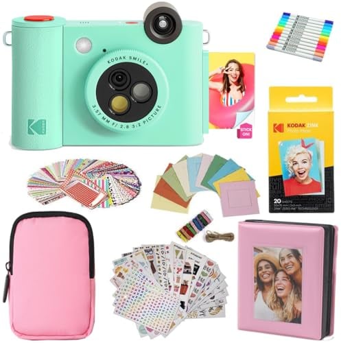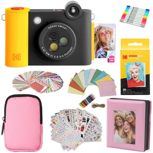 KODAK Smile+ 2-in-1 Digital Instant Camera & Photo Printer Gift Bundle - Case + Zink 20pk Paper + Album + Stickers + Frames + Markers - Pink
