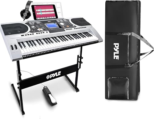 Pyle 61 Keys Electric Keyboard Piano, Kids Music Digital Piano Keyboard with Stand for Beginners, Adult Electronic Keyboards, Portable Musical Karaoke Instrument w/ Sustain Pedal/Case/Headphones