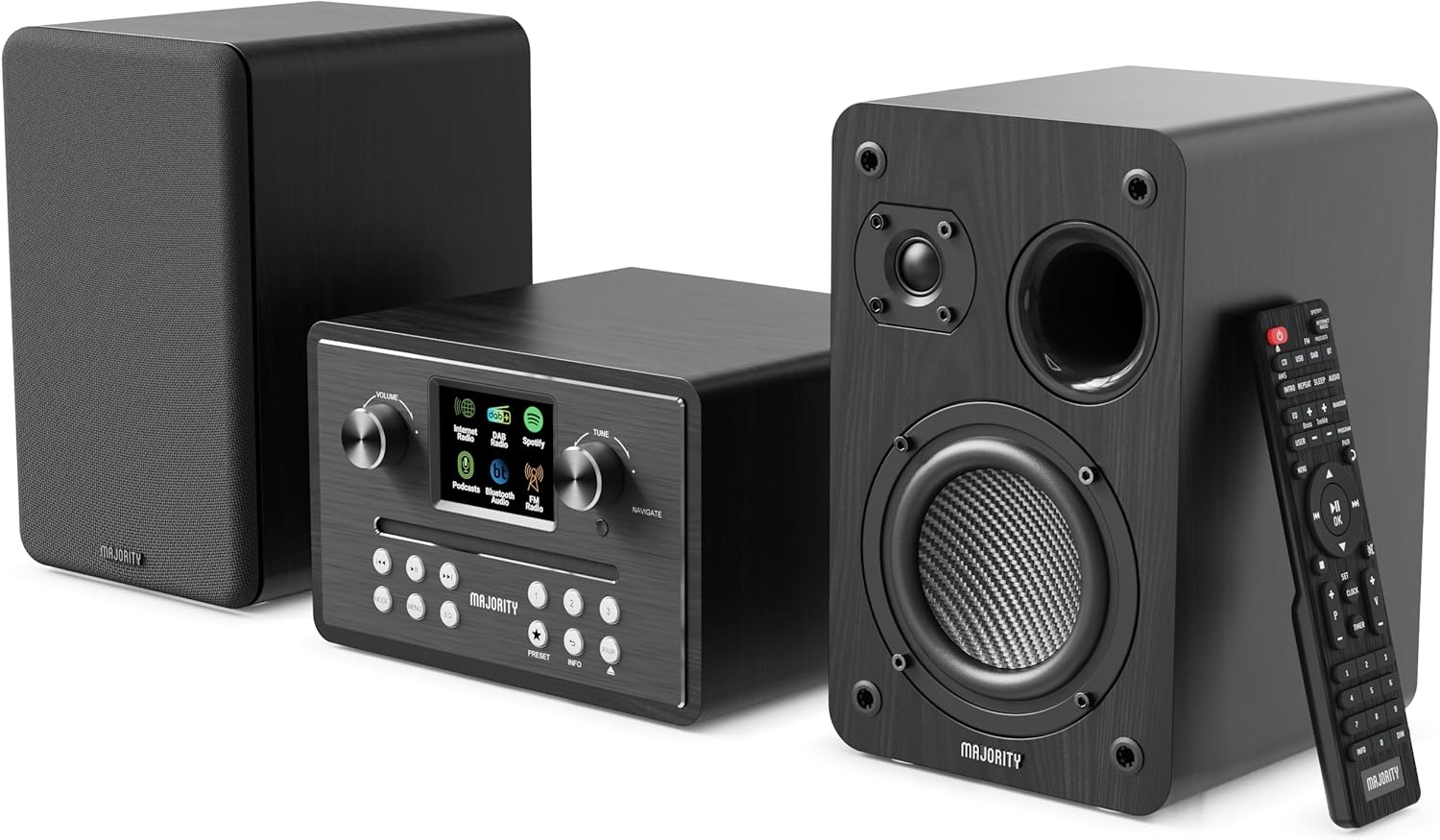 Majority Homerton HiFi Stereo System | DAB/DAB+ Digital Radio, FM, CD Player, Internet Radio, Bluetooth 5.3, WiFi Dual Band, USB Playback, Spotify Co