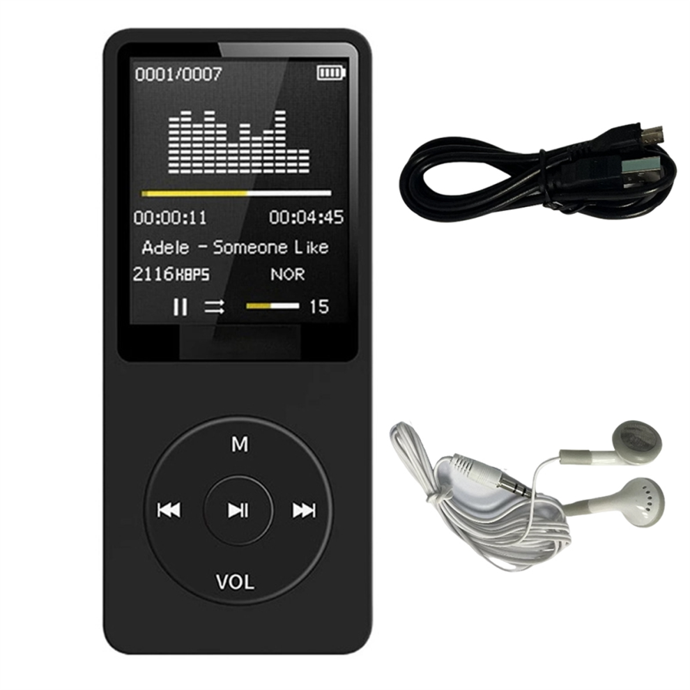 MP3 Player USB Charging Record Digital Display Screen Media Portable Running Walking Music Play Black