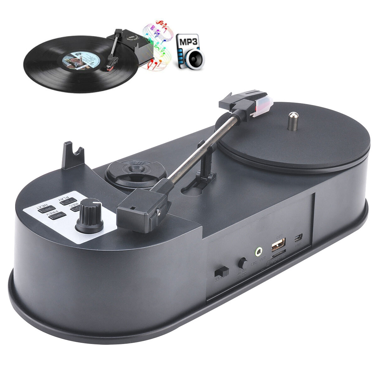 B08D Record Player Turntable Digital Encoder Vinyl MP3 Converter in USB MicroSD