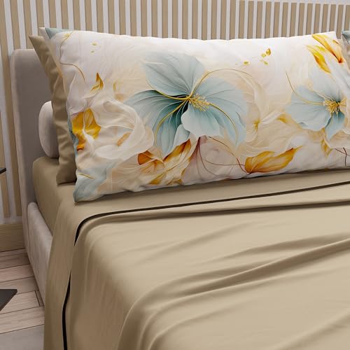 PETTI Artigiani Italiani - Cotton Sheets with Pillowcases in Digital Print, Double Maxi, Top and Bottom Sheet Set with Corners, Cream, 100% Made in Italy