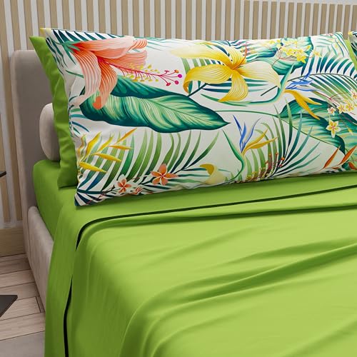 PETTI Artigiani Italiani - Cotton Sheets with Pillowcases in Digital Print, French Quarter Size, Top and Bottom Sheet Set with Corners, Havana Green, 100% Made in Italy