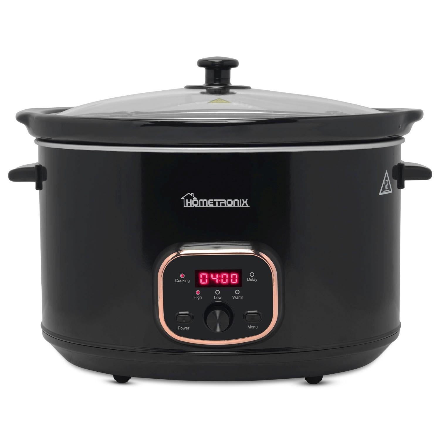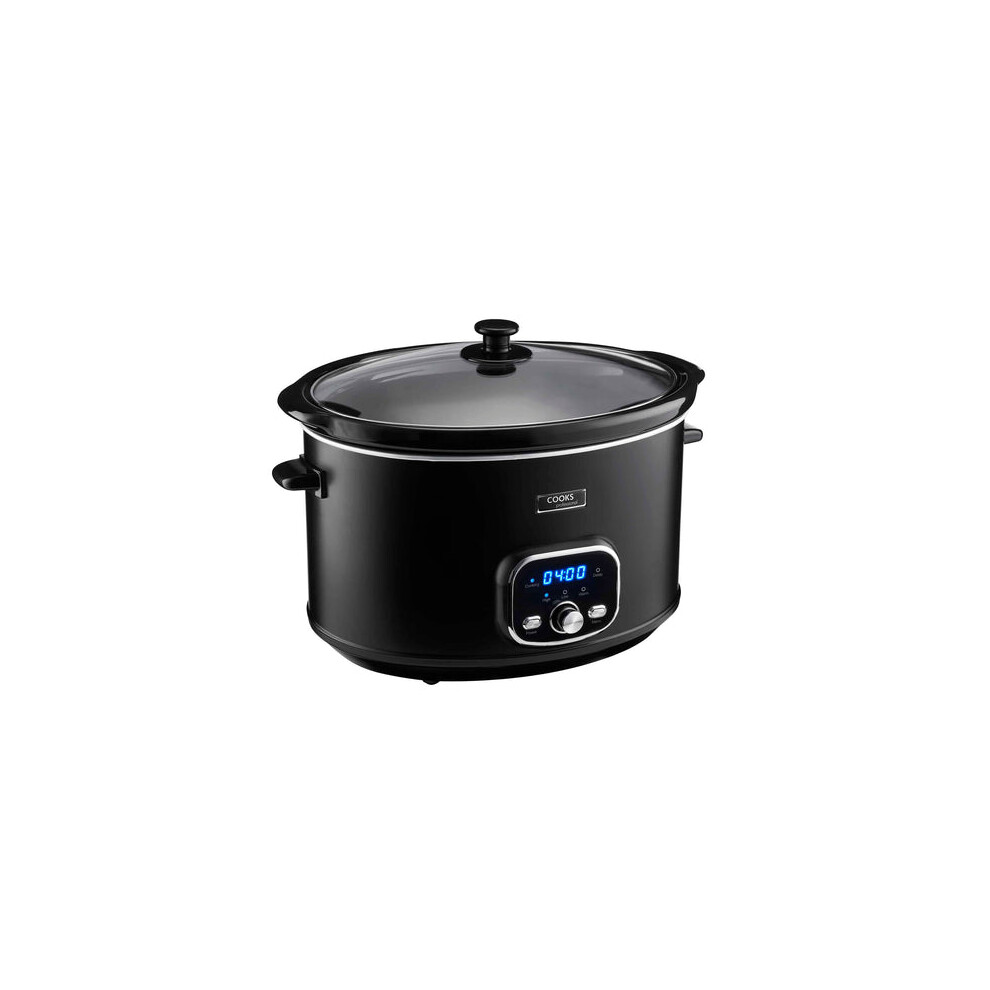 Cooks Professional Digital Slow Cooker 6.5 Litre with Glass Lid, Cool Touch Handles, Dishwasher Safe Bowl, 2 Heat Settings & Keep Warm & Delay Functions | Large One Pot Cooking Machine | Black
