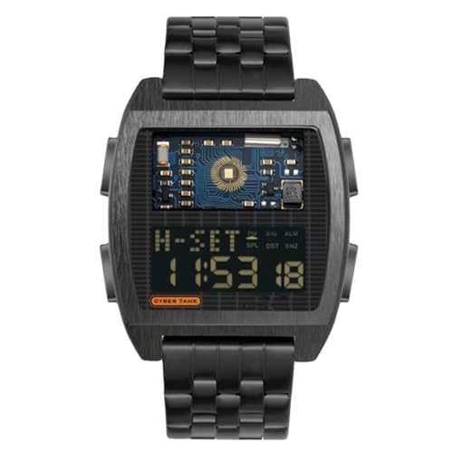 Digital Smart Watch - Sports Digital Wrist Watch, Square Men's Digital Timepiece | Electronic Waterproof Stopwatch with Stainless Steel Wristband, Outdoor Digital Smart Watch for Men(Black)